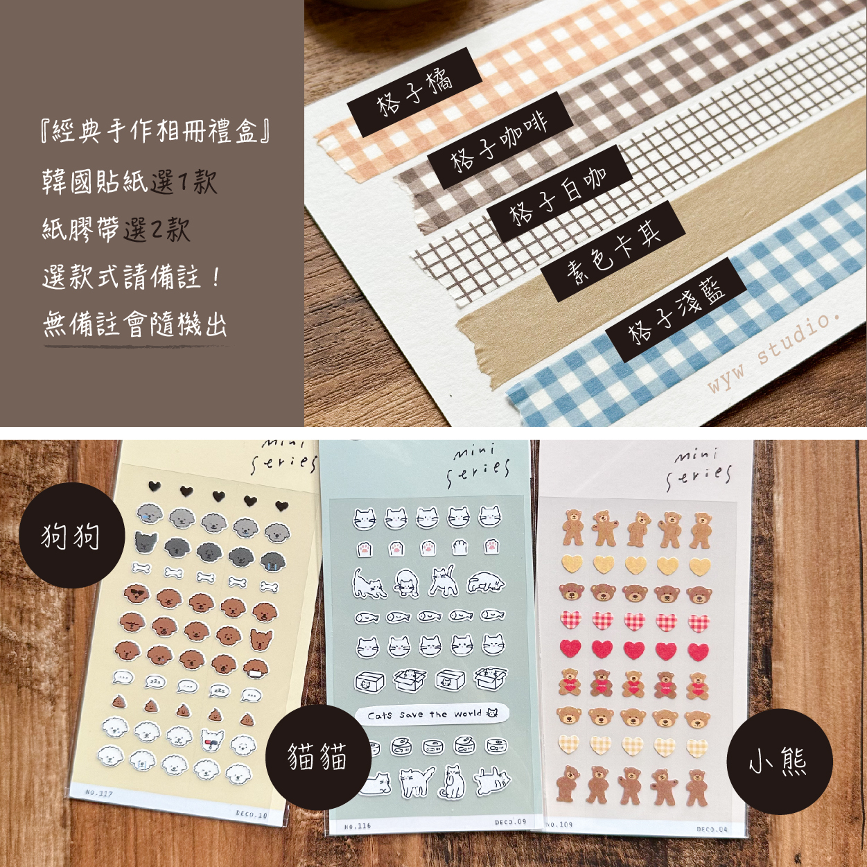 『經典手作相冊禮盒』韓國貼紙選1款/紙膠帶選2款